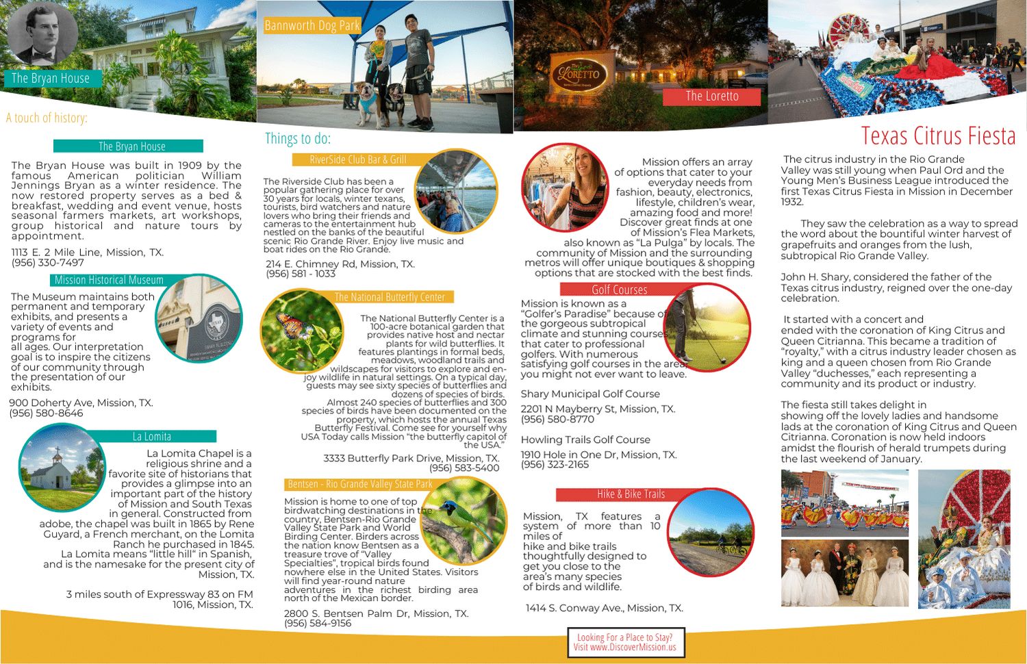 For those interested in Nature Attractions, the City of Mission offers world-class parks that provide visitors unbelievable opportunities for bird and butterfly watching. With hundreds of species unique to the area, you might just consider Mission a once-in-a-lifetime adventure.